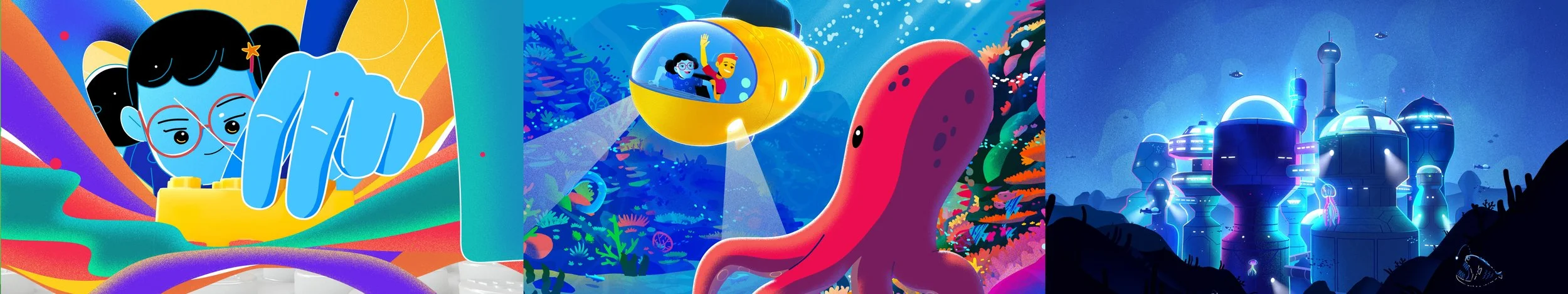 During production at Scholar, our artists were tasked with the challenge of adapting quickly and tackling a range of design styles as concepts were developed. The success of each idea was dependent on the unique and eye-catching look and feel of each moment that lived between supers. So we tapped into every style we could think of to create exciting bursts of animation, CG, and live action. With less control over exactly which shots were chosen to air, we needed to ensure our toolkit of design was stylistically balanced, and would always capture the mixed-media Google style.
